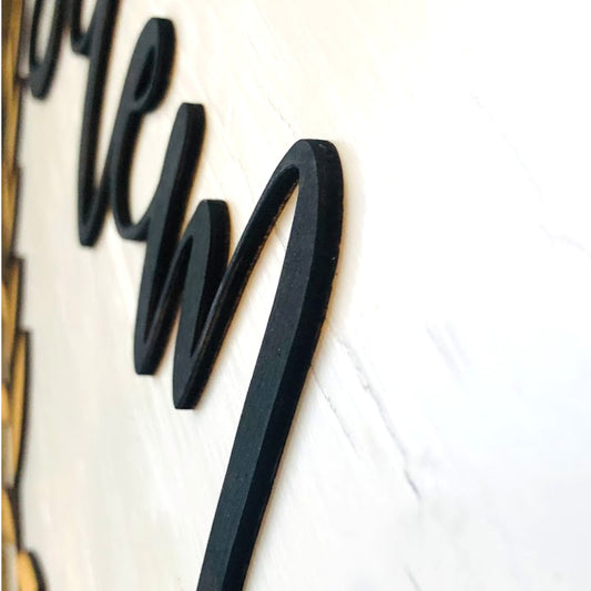 Personalized 3D Family name round wood sign with wreath
