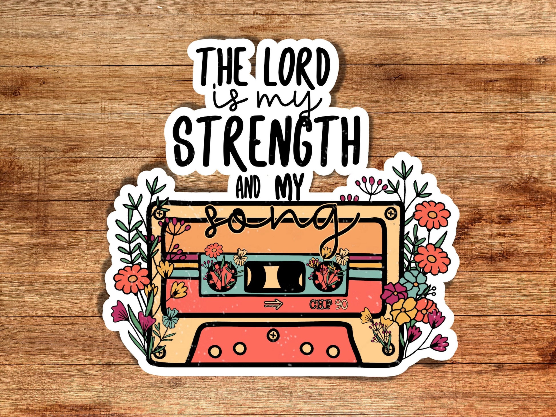 Bible verse sticker, christian sticker, retro sticker, lord is my strength, jesus quote sticker, waterbottle sticker, vintage flowers