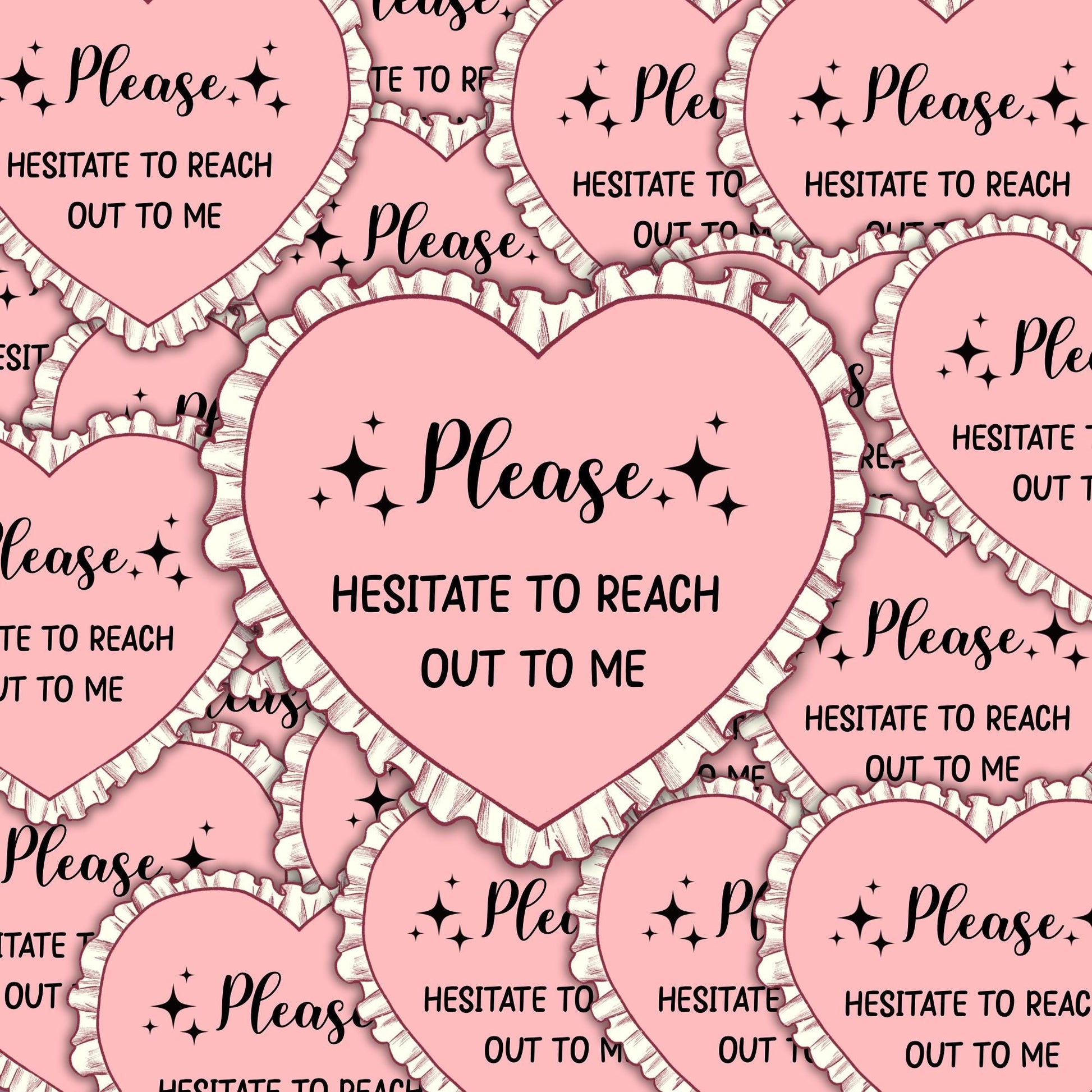 Sweet, sassy, and just the right amount of passive-aggressive. This “Please Hesitate to Reach Out” heart sticker brings coquette-core vibes with a touch of dry humor. Whether you’re feeling flirty or just done with small talk, this sticker says it all—so you don’t have to.
