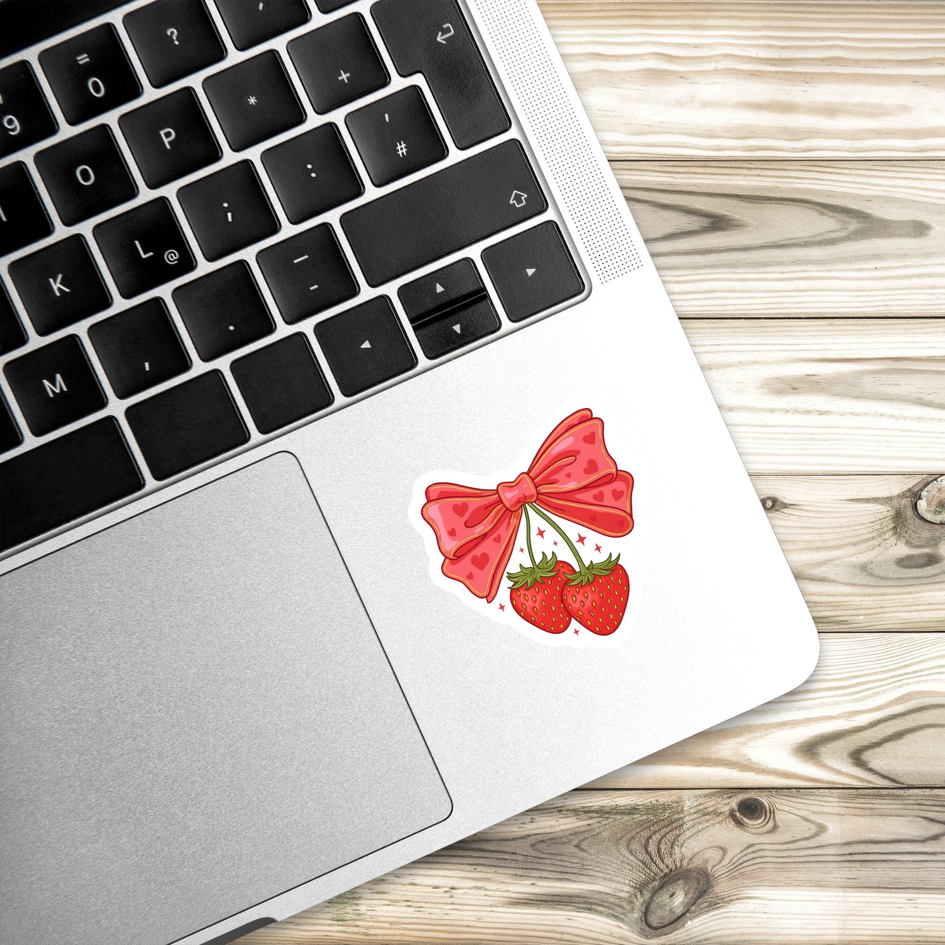 Coquette Strawberry Sticker: Glossy Vinyl Laptop Decal