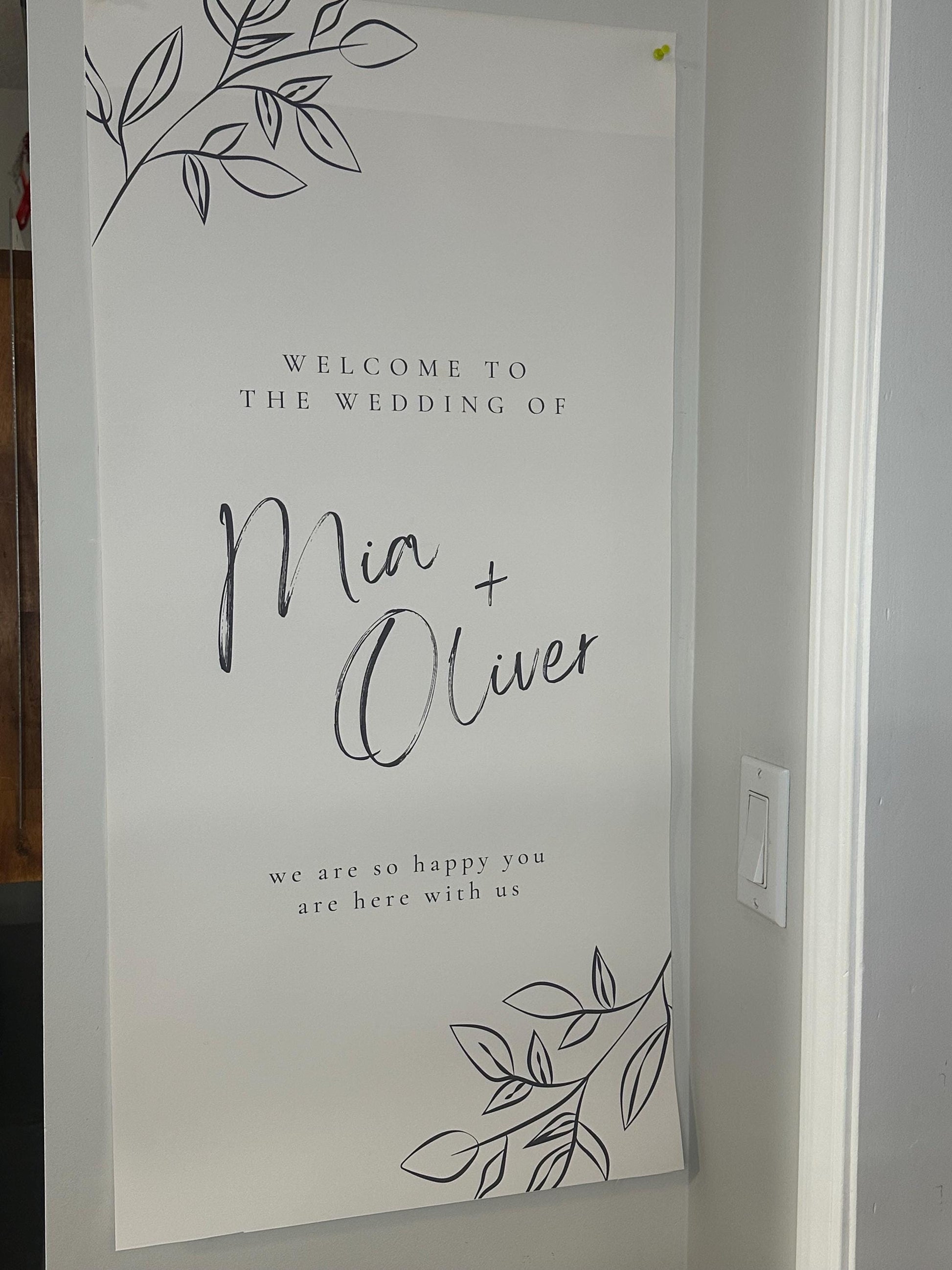 Welcome your guests in style with this elegant custom wedding welcome sign, featuring a modern minimalist floral design. Personalized with the couple’s names and wedding date, this sign sets a beautiful tone for your big day.