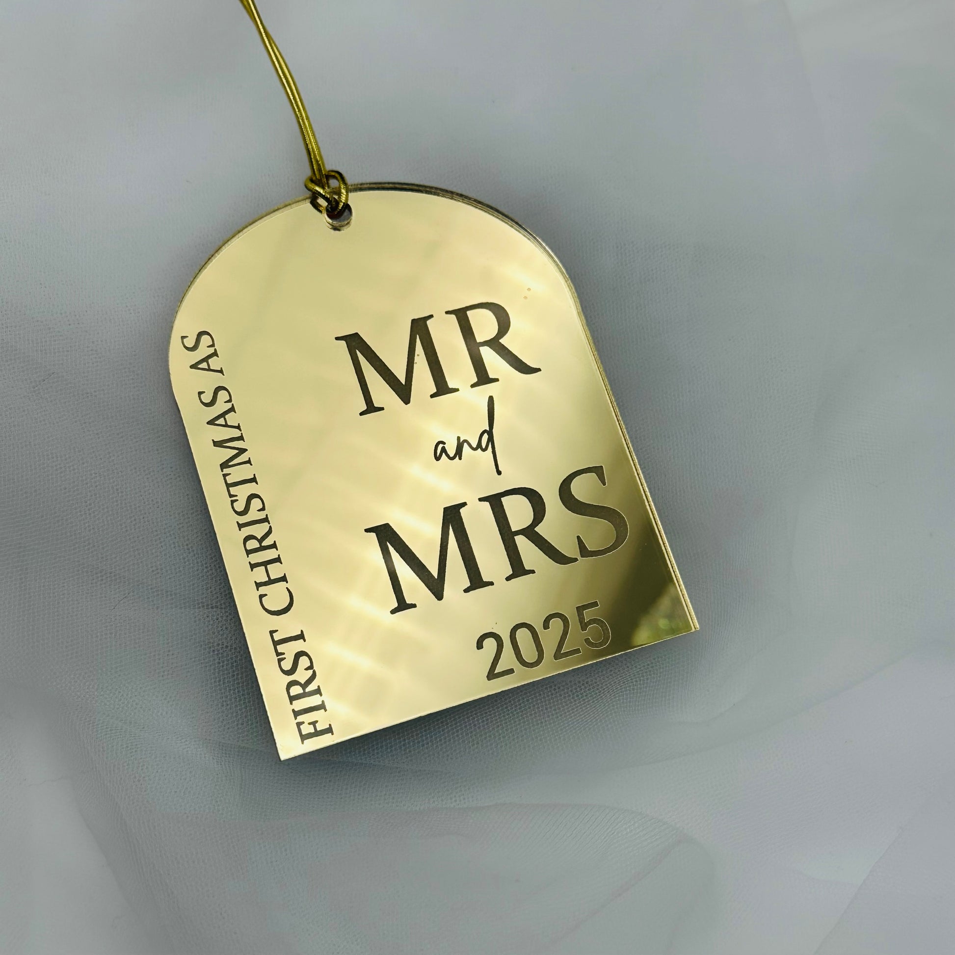 First Christmas as Mr & Mrs Ornament 2025 – Gold Mirror Acrylic