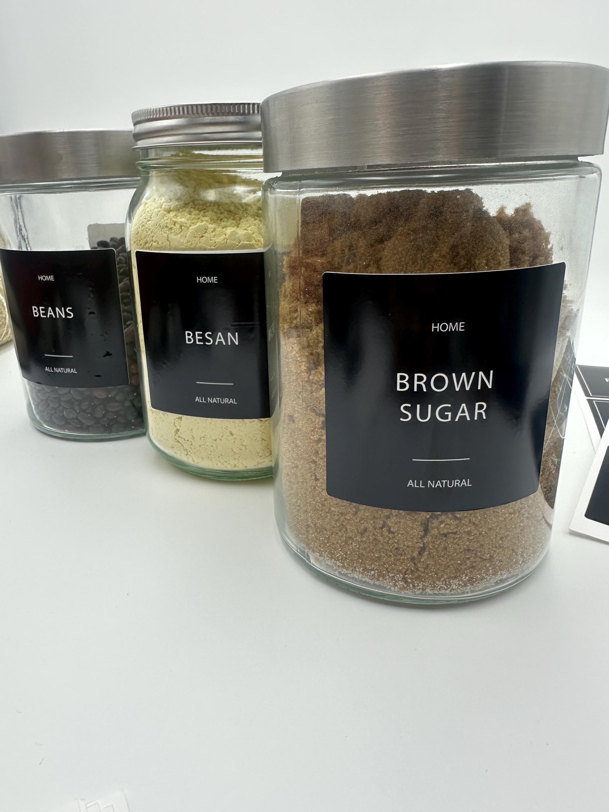 Bring order and elegance to your kitchen with this complete set of 36 pantry labels. Designed with a clean and modern black-and-white style, these self-adhesive labels make it easy to identify your essentials while giving your jars, canisters, and containers a uniform, aesthetic look.