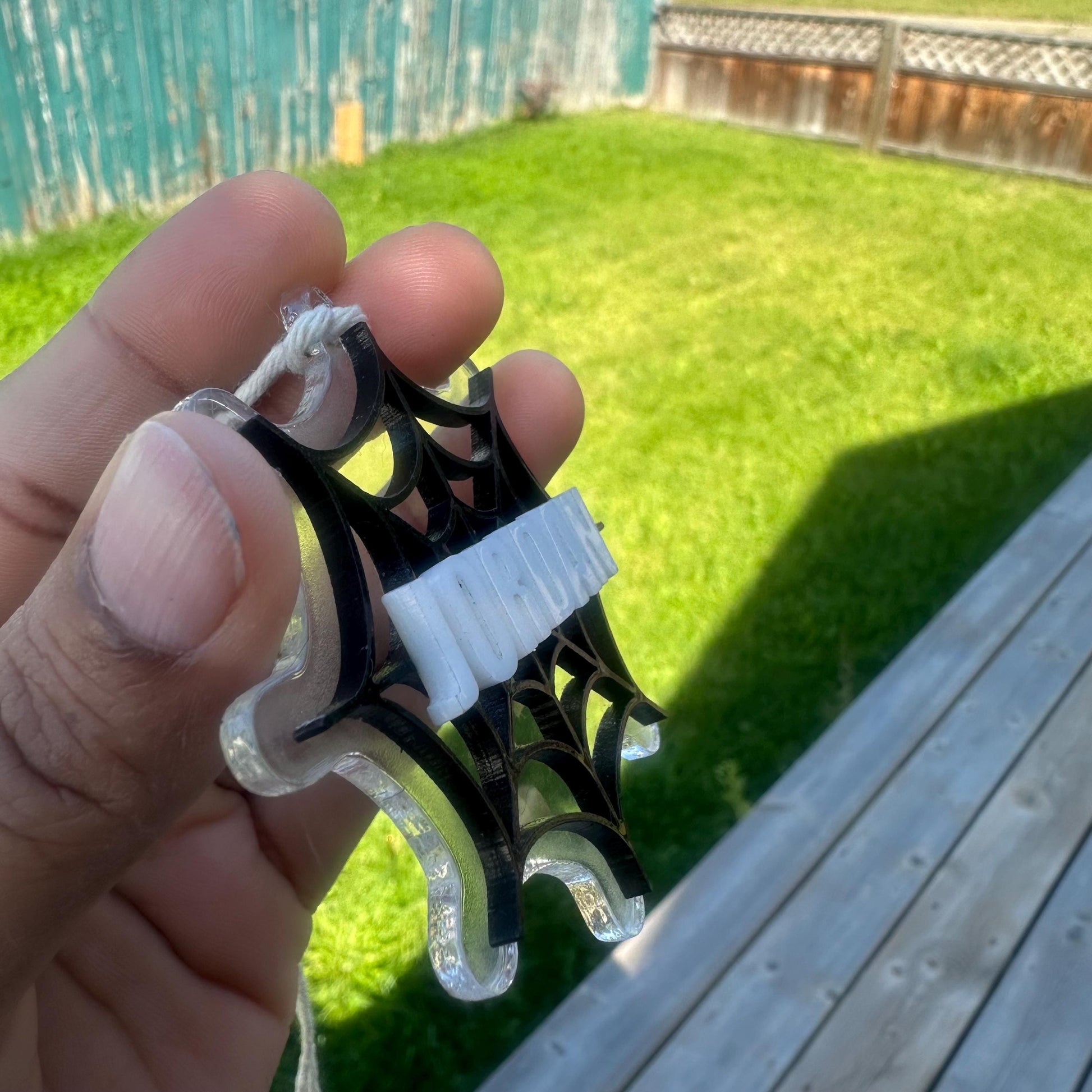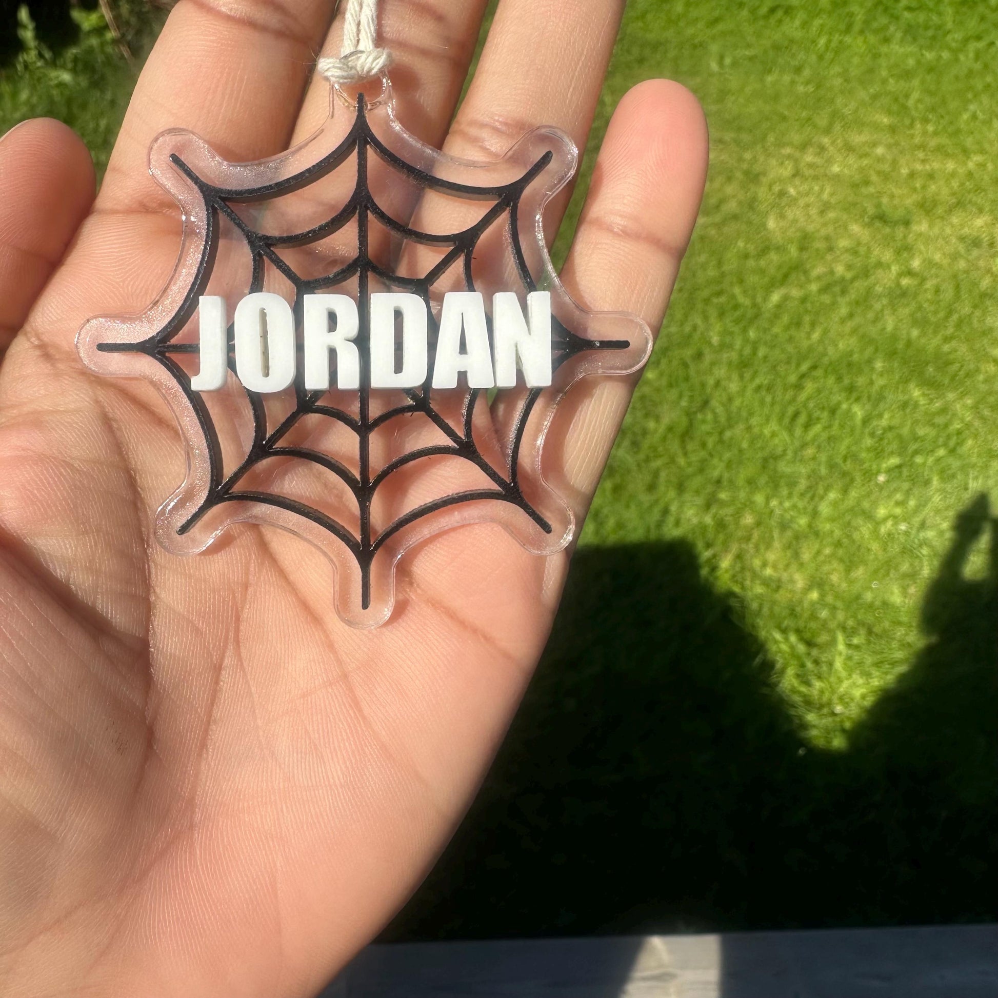 Personalized Acrylic Halloween Basket Tag: Spider Web Charm