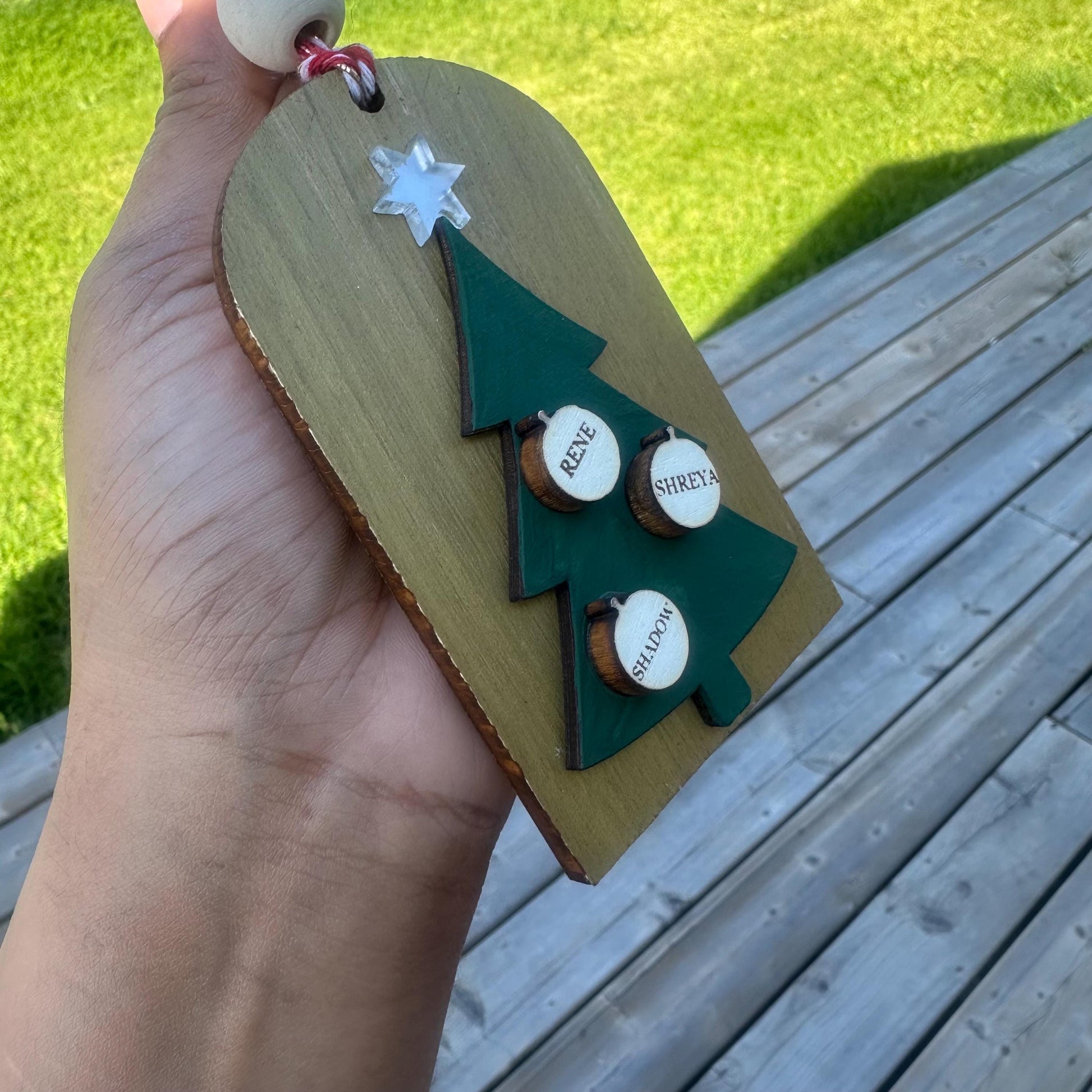 Personalized Engraved Wood Christmas Stocking Tags: Rustic Birch & Acrylic