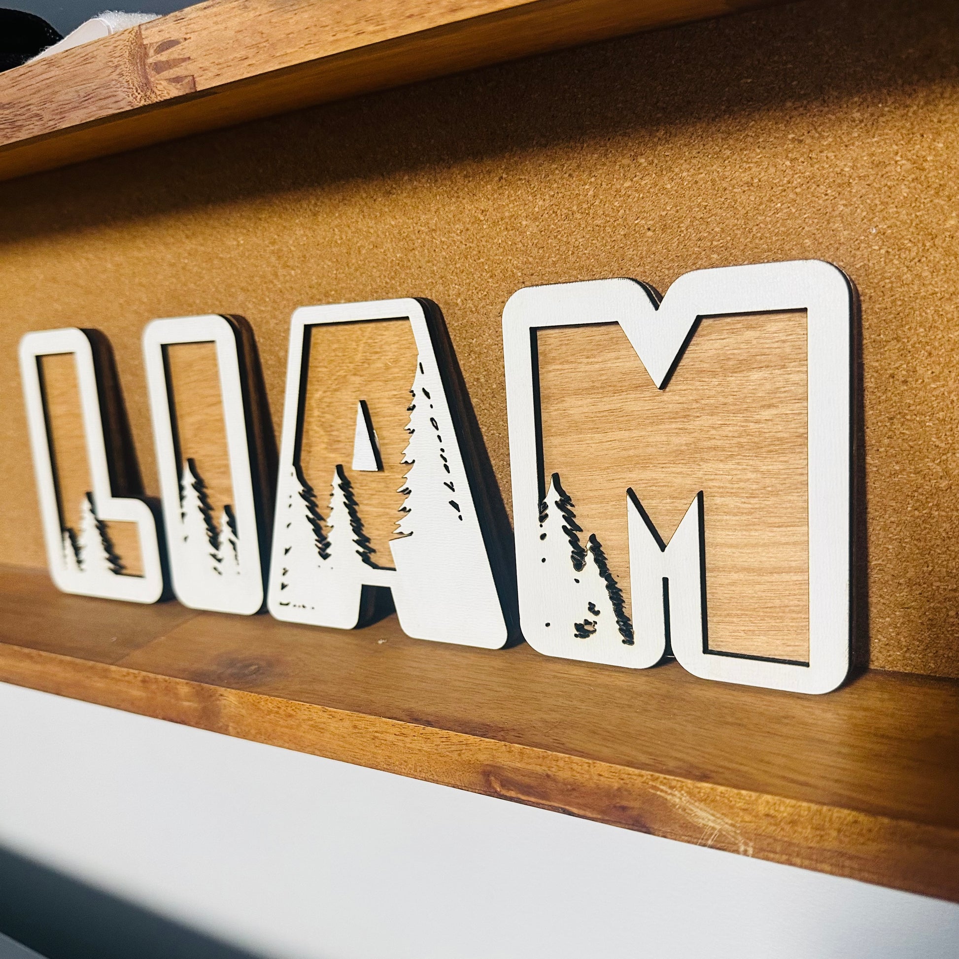 Personalized Wood Name Sign with Trees – Custom Nursery Wall Decor, Rustic Baby Room Decor, Woodland Theme Kids Room Name Sign