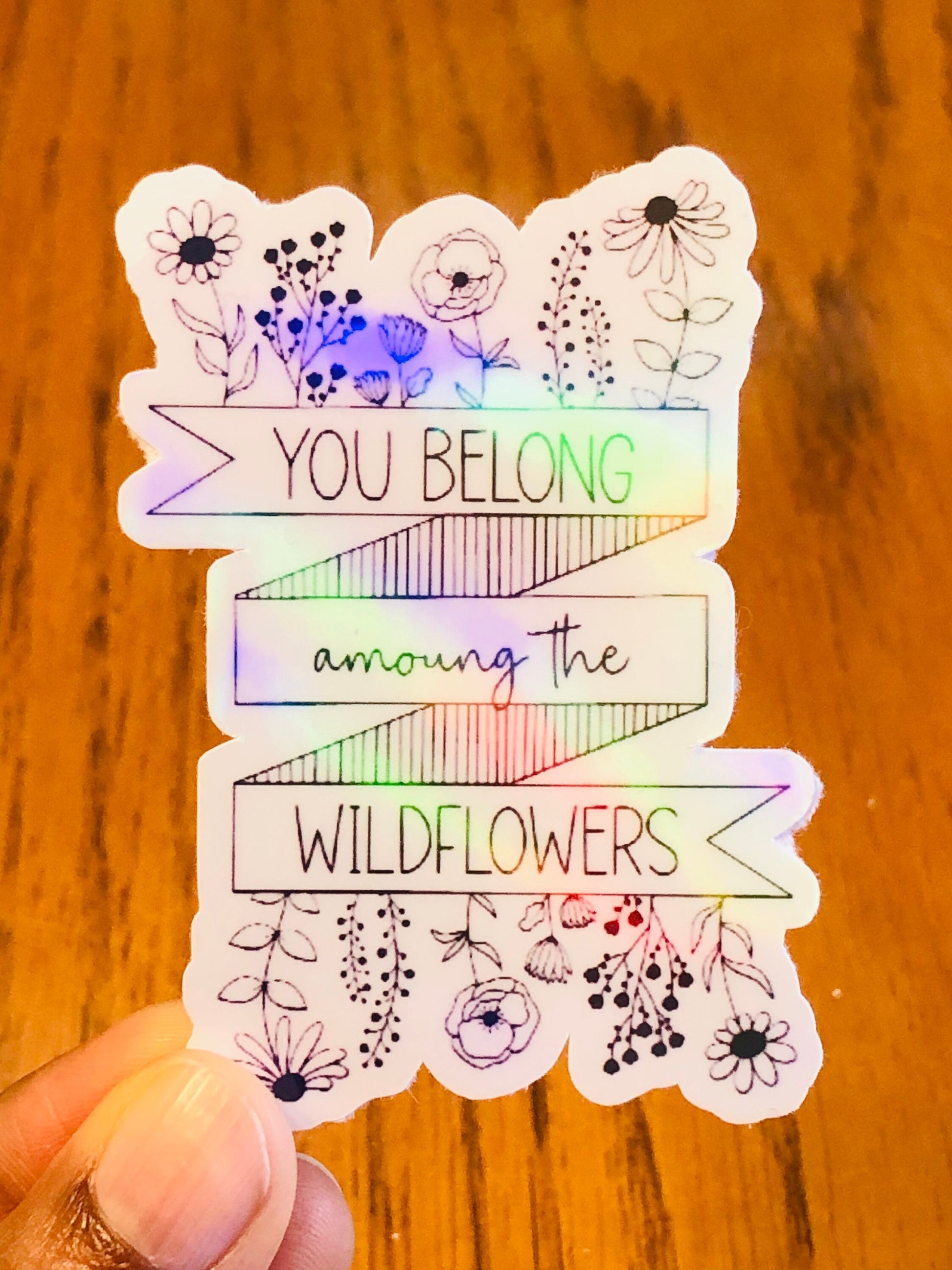 You belong among the wildflowers holographic sticker, Rainbow sticker, motivational sticker, quote sticker